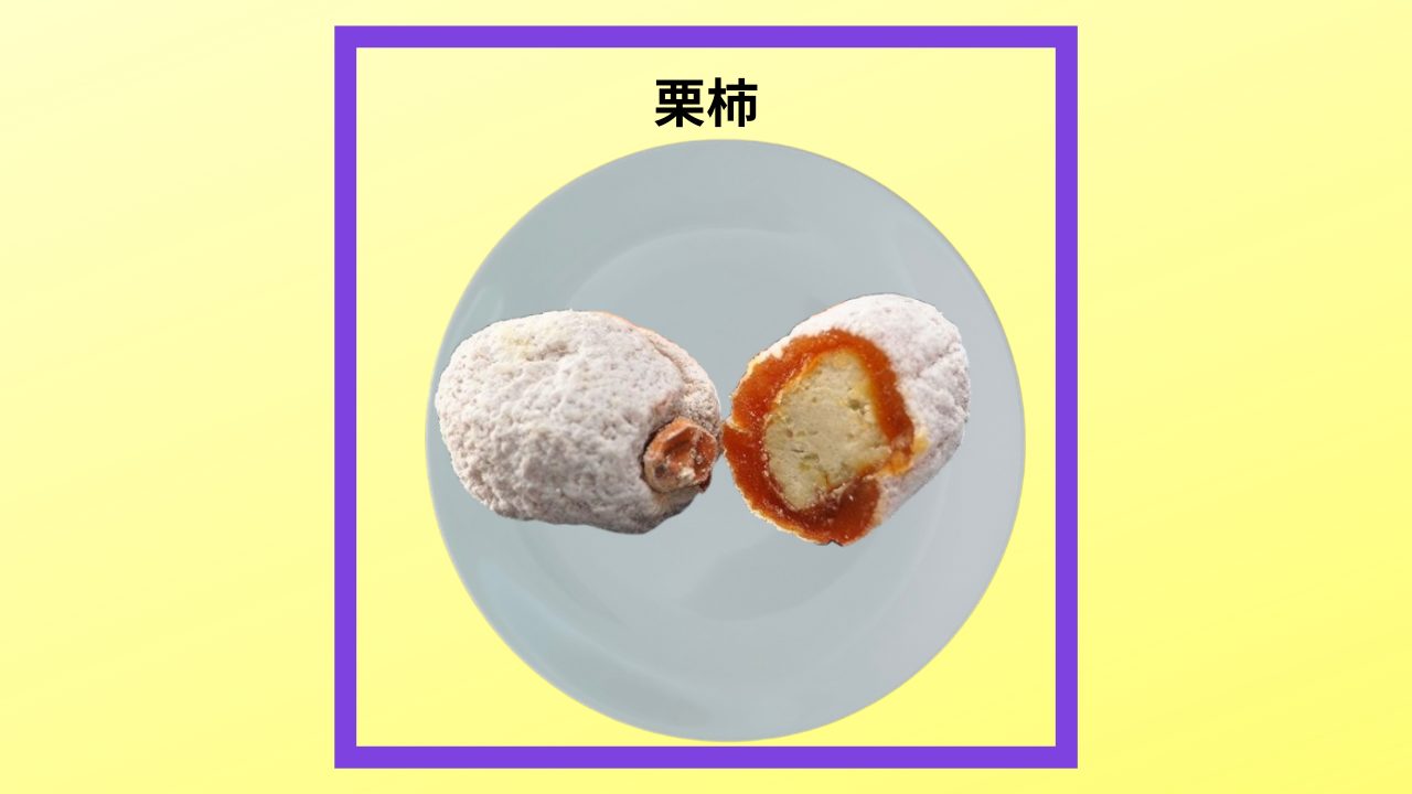 久々に頂きました!!柿の中身をくり抜いて栗の餡が入っています。柔らかくシットリしていてとても美味しいですネ1個だけにしときます。