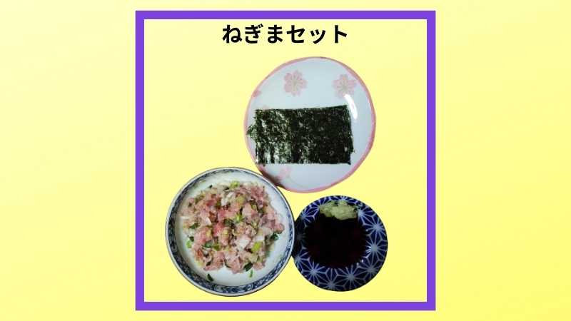 にて買い求めましたマグロのスキミに、長ネギの微塵切りを足しまして海苔で巻いて頂きました。