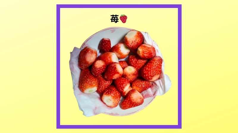 果物は苺🍓頂き物の苺です、分かりにくいですが2種類の苺です。